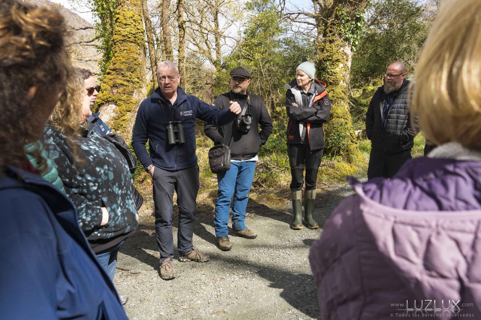 A continuación, as persoas asistentes participaron nunha visita técnica polos bosques de Glenveagh, guiada polos gardas de conservación Martin Toye e Eibhlín McGeever, na que se presentaron as principais liñas da nova estratexia de xestión forestal do parque: eliminación de especies invasoras, control das poboacións de cervos, expansión do bosque autóctono e creación dun viveiro forestal propio. O encontro foi valorado moi positivamente, ao favorecer o intercambio de experiencias, a creación de novas conexións e a incorporación de aprendizaxes útiles para a seguinte fase dos proxectos.